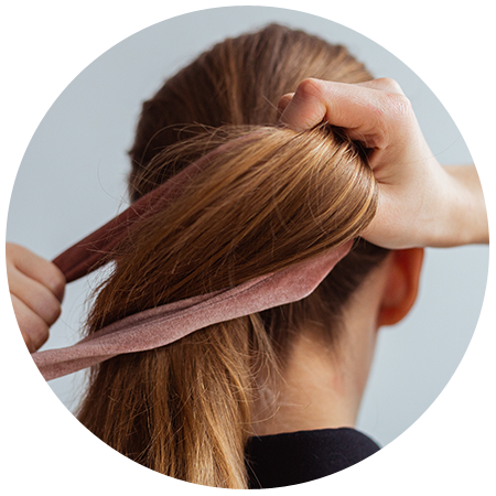 Vos cheveux ne coopèrent pas ? Attachez-les en queue de cheval ou en chignon avec un chouchou coloré, et le tour est joué !