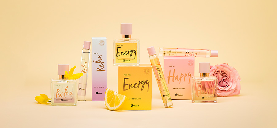 Kruidvat aime vous faire sentir bien dans votre peau. C’est pourquoi nous lançons notre propre ligne d’eaux de toilette. Des parfums qui font plus que seulement sentir bon : chacune des fragrances contient des ingrédients bien-être qui ont un effet particulier sur l’humeur. Vous êtes stressé(e), vous avez du mal à vous endormir ou vous souffrez d’anxiété ? Laissez votre nez prendre soin de votre tête. En vous ouvrant à nos parfums joyeux, relaxants et revigorants, vous invitez le bonheur, le calme ou justement l’énergie dans votre vie.