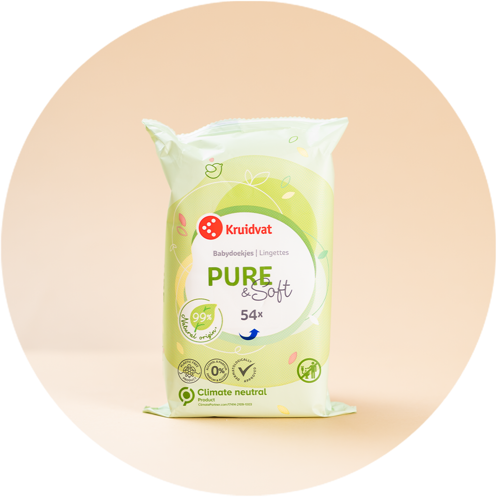 Lorsque vous utilisez les Lingettes Bébé Pure & Soft Kruidvat, la peau délicate de votre petit bout entre uniquement en contact avec des matériaux doux et naturels. Les lingettes sont exemptes de plastique et portent le label « Certifié par ClimatePartner ». L’emballage est recyclable. Bref, nos lingettes Pure & Soft Sont meilleures pour votre bébé et pour la planète ! Elles ont reçu 8,2 sur 10, encore une belle note !