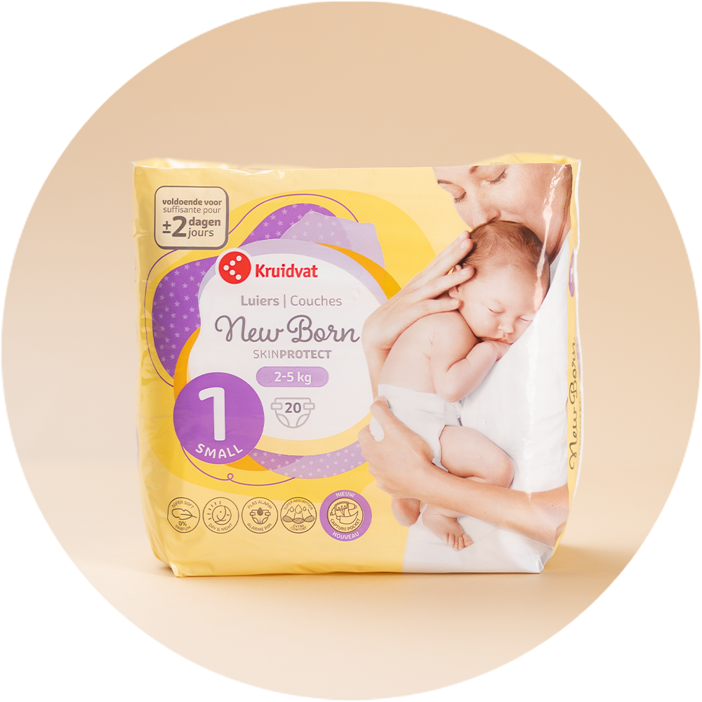 Nos couches NewBorn Kruidvat sont douces et flexibles et tiennent votre bébé parfaitement au sec. Pas moins de 90,8 % des participants à l’étude recommanderaient nos couches à leurs amis et leur famille. Elles ont reçu 8,1 sur dix. Cette qualité n’est pas reflétée dans le prix, car les langes ont un petit prix Kruidvat. Les couches pour les tout-petits ont une alarme pipi très pratique. Grâce à l’élastique dans le dos, elles épousent bien le corps de bébé. Les matériaux respirants assurent que la peau reste plus sèche.