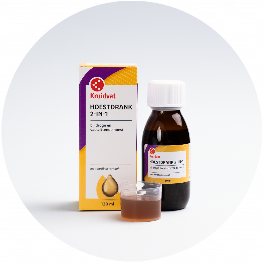 Le Sirop contre la Toux 2-en-1 Kruidvat* pose une couche protectrice sur vos muqueuses, diminuant vos épisodes de toux et protégeant votre gorge des irritations.