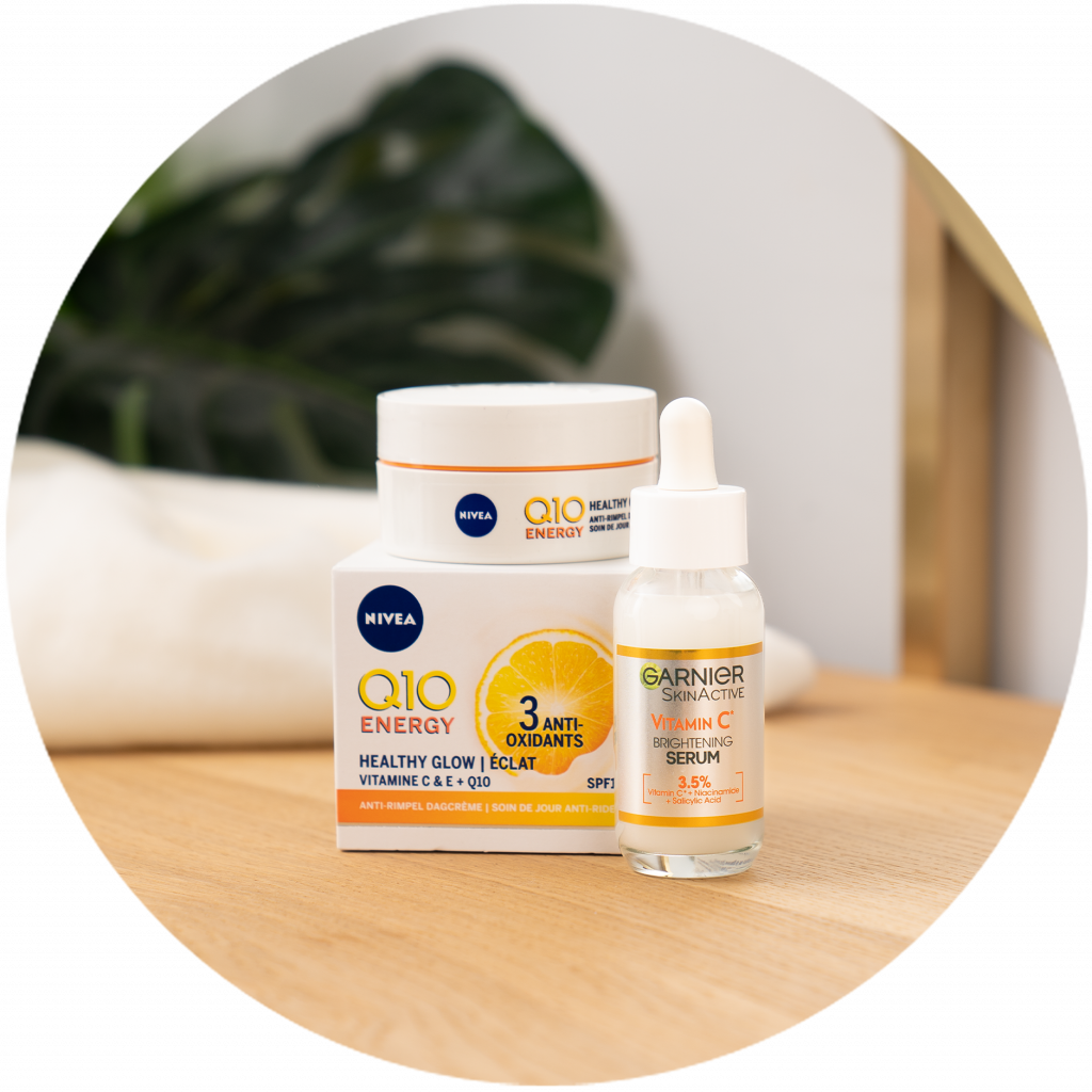 Astuce : la vitamine C est un antioxydant. Les antioxydants réagissent avec l’oxygène et avec la lumière. Veillez donc à conserver vos produits de soin dans un endroit frais, à l’abri de la lumière. Privilégiez les produits de soin ou les nettoyants contenus dans une bouteille à pompe ou conditionnés dans un emballage étanche à l’air. Ainsi, vous préservez leur efficacité plus longtemps.