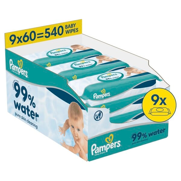 Pampers 99% D'Eau Lingettes Pour Bébé, 9 Paquets De 60 Lingettes = 540 Lingettes
