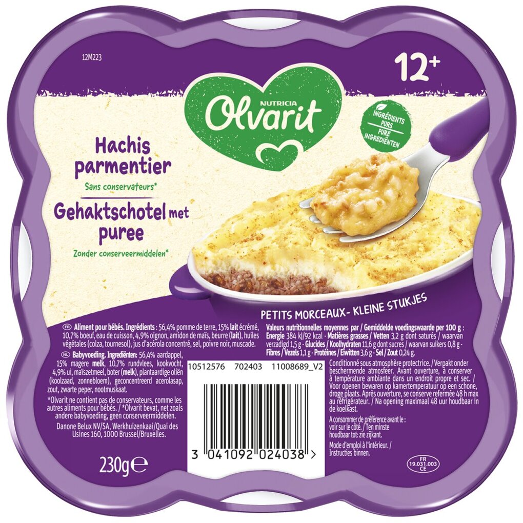 Olvarit 12+M Gehaktschotel met Puree Maaltijd
