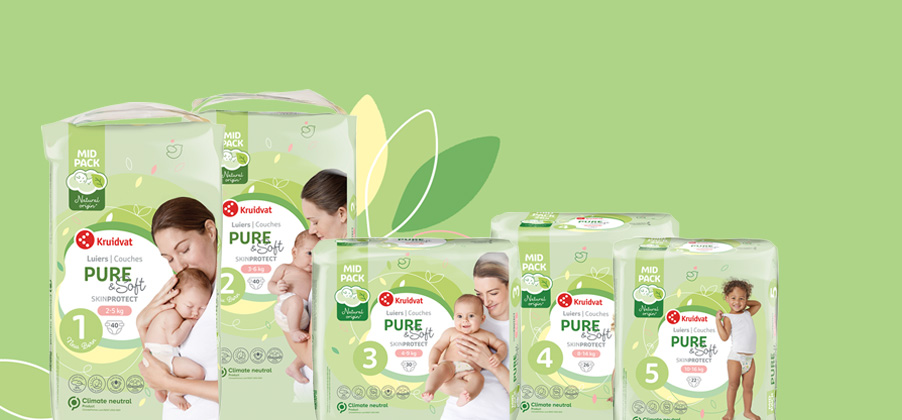 Tijd voor een luierwissel? Kies dan voor onze nieuwe Kruidvat Pure & Soft luier. Dit is onze klimaatneutrale luier. Zacht & natuurlijk voor de huid van je kindje en beter voor onze wereld! Meer weten? Lees dan snel verder, want hier vertellen we er alles over.
