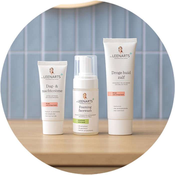 Heb je last van puistjes, mee-eters of acne? Probeer eens de Drs Leenarts Schuimende gezichtsreiniger. Hij reinigt niet alleen, maar helpt ook puistjes en onzuiverheden te voorkomen. Heb je juist een (zeer) droge huid? Dan is de extra vettende Drs Leenarts Droge & Zeer Droge Huid dag- & nachtcrème perfect voor jou! Hier lees je meer over hoe je je droge huid verzorgt met de producten van Drs Leenarts.