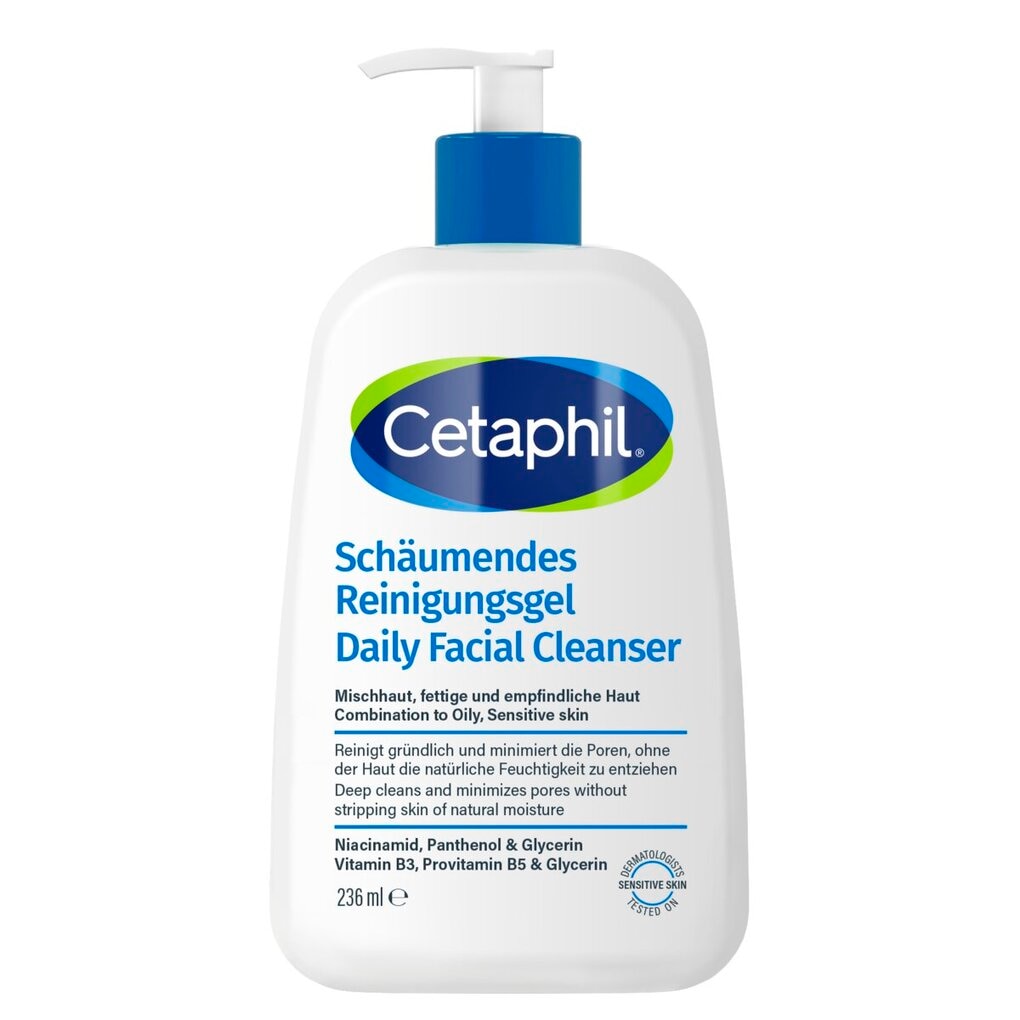 - De Cetaphil Daily Facial cleanser is perfect als je een gecombineerd, vette of gevoelige huid hebt. De cleanser reinigt niet alleen je huid, maar vermindert ook de zichtbaarheid van je poriën. Het bevat een unieke combinatie van glycerine, niacinamide (vitamine B3) en panthenol (pro-vitamine B5) voor optimale hydratatie.
