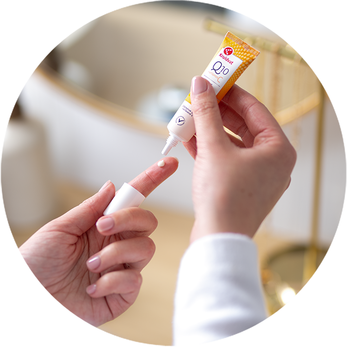 Weetje: waarom gebruik je je ringvinger? Met deze vinger kan je de minste druk uitoefenen en is hierdoor ideaal voor het zachtjes aanbrengen van de oogcrème.