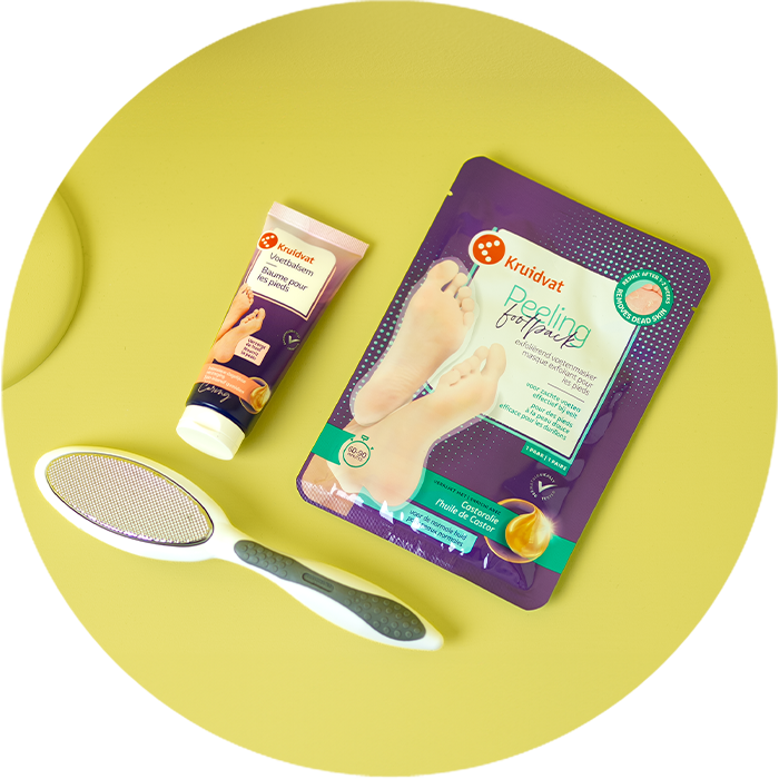 Ook kan je het Kruidvat Peeling Footpack Exfoliërend Voetenmasker gebruiken om eelt te verwijderen. Deze kan je het beste als één tot twee weken voor je thuispedicure aanbrengen. Tegen die tijd is het eelt op je voeten verwijderd en voelen ze heerlijk zacht aan. Lees hier meer over eelt op je voeten verwijderen.