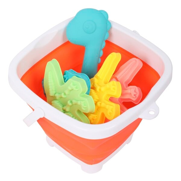 Deze zevendelige Dino Strandset garandeert urenlange zand- en waterpret! De set bevat onder andere een opvouwbare emmer, een schepje en verschillende zandvormen. Geschikt voor kinderen vanaf 3 jaar.