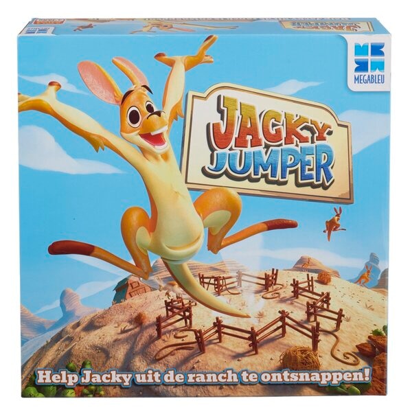 Megableu Jacky Jumper is een grappig actiespel met een trampolinespeelveld en stuiterende kangoeroes. Het spel is geschikt voor 2 tot 4 spelers vanaf 5 jaar.